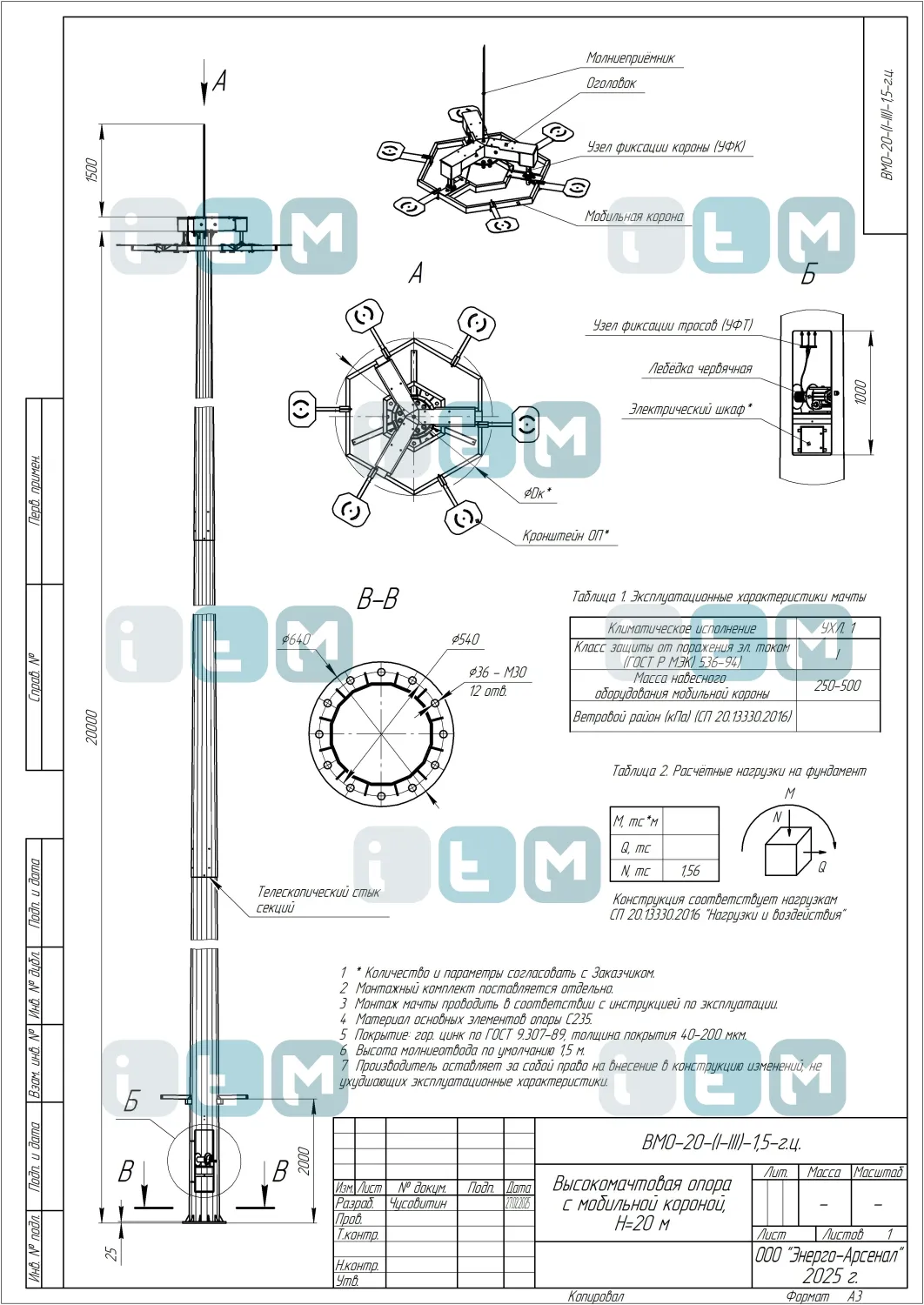 Особенности мачты ВМО-20-440/190 (МГФ-20-М)